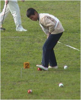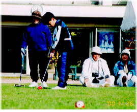 ゲートボール場では年齢も性別もなく