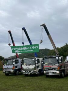 今年も、パワーショベル、高所作業車、大型トラック、パトカー、トラック縁日、トラックレンジャーなどたくさんのイベントブースを用意しました。新たなブースとして重機サッカーも用意しましたが、とても好評でした。おかげさまで、3000人を超える来場者数になりました。
