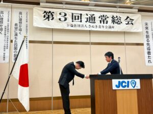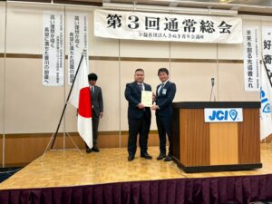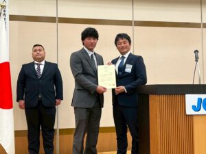 また、総会の中で、2025年度最優秀新入会員の表彰があり、三谷君が選ばれました。